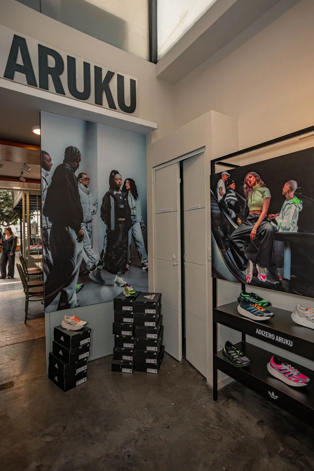 Para darle vida a ese concepto, intervenimos un café aesthetic y lo transformamos en un showroom Adidas, donde cada detalle, desde el recorrido hasta la exhibición de producto, respiraba el ADN de la marca. El espacio invitaba a descubrir, probar y construir looks con las Aruku como pieza central.