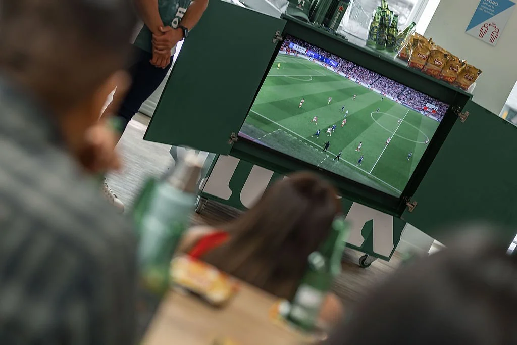 Un carrito móvil irrumpió en oficinas en el momento justo, transformando la rutina en un break inesperado. Un espacio relajado donde la UEFA se vivía en pantalla, acompañado de snacks y la compañera perfecta: Heineken.